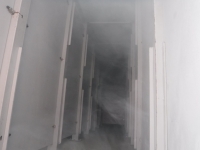 市民訓練施設内にある煙中避難訓練施設の様子です。中は迷路のように仕切られており、実際に煙(人体に無害)を発生させて訓練ができるようになっていま