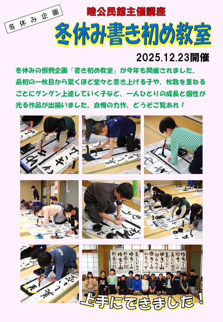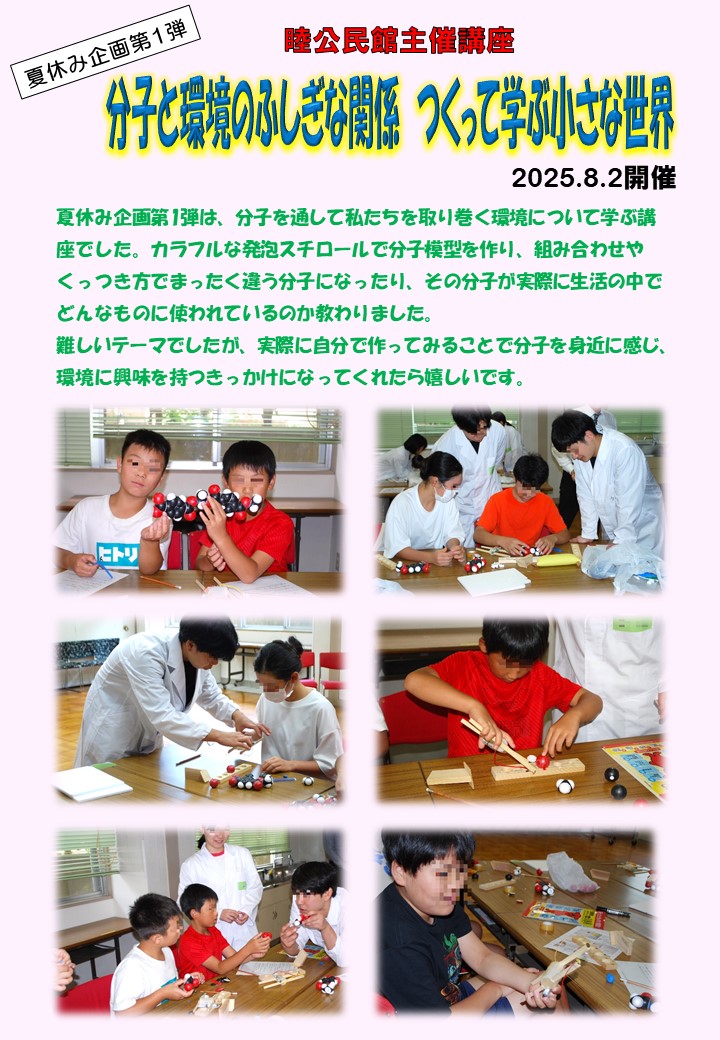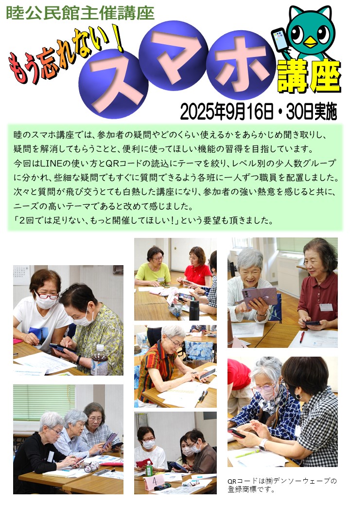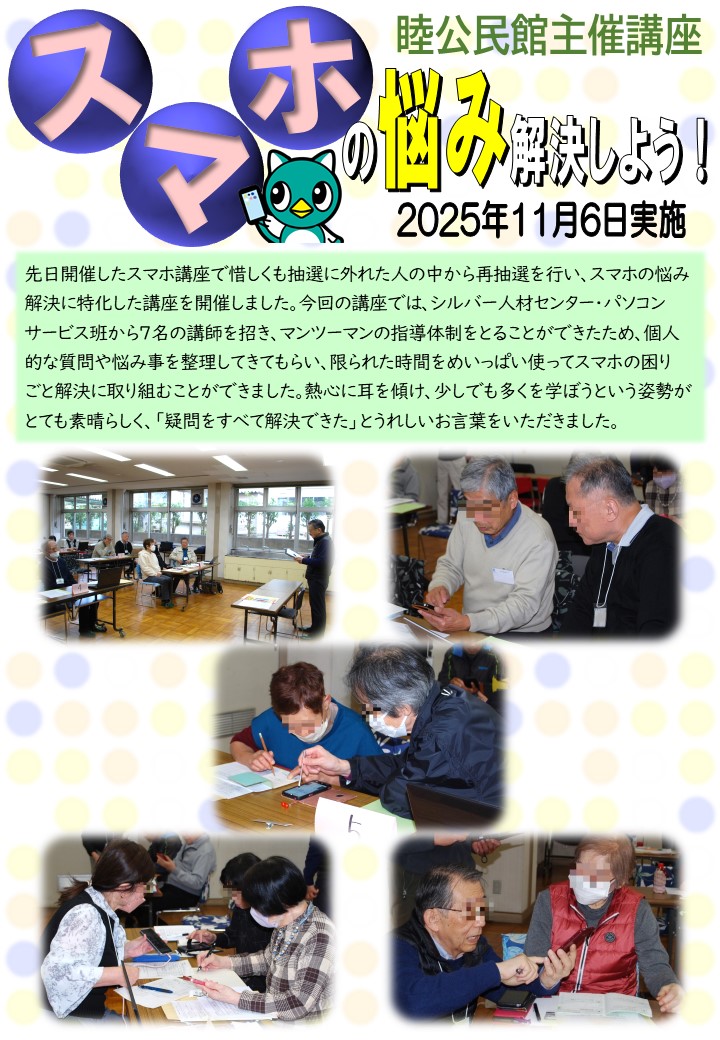 令和7年度に睦公民館で開催した主催講座をまとめました。ぜひご覧ください。