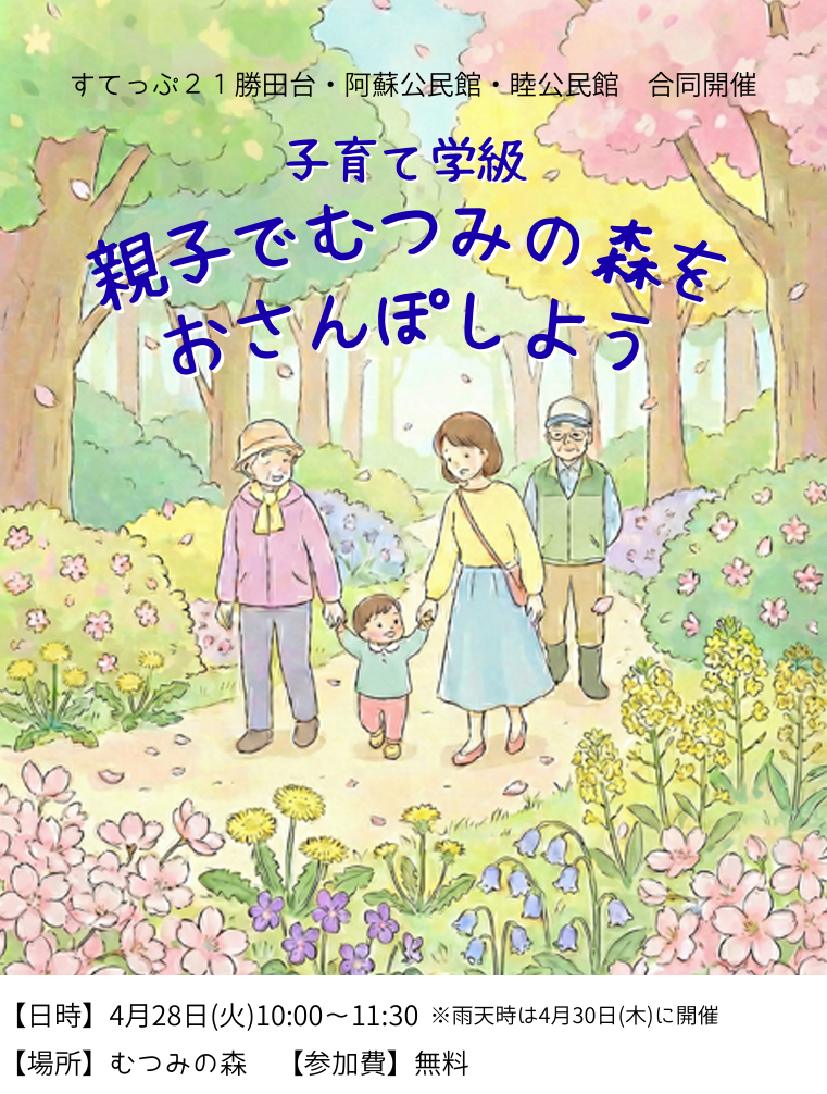 むつみの森には、春のワクワクがたくさん!隊員の皆さんに春のお花や植物のヒミツを優しく教えてもらいながら、親子でのんびりおさんぽしましょう。