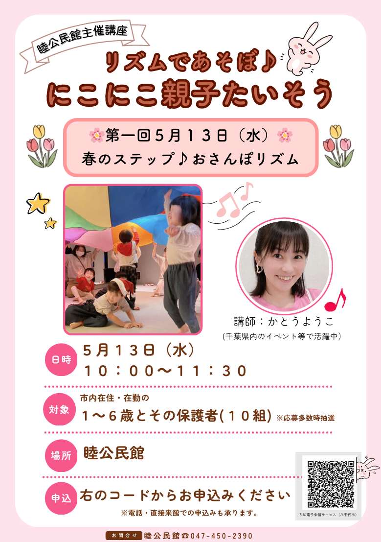 【枠に余裕があります】睦公民館主催講座 リズムであそぼ♪にこにこ親子たいそう